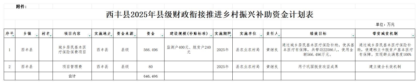 附件:西丰县2025年县级财政衔接推进乡村振兴补助资金使用计划表