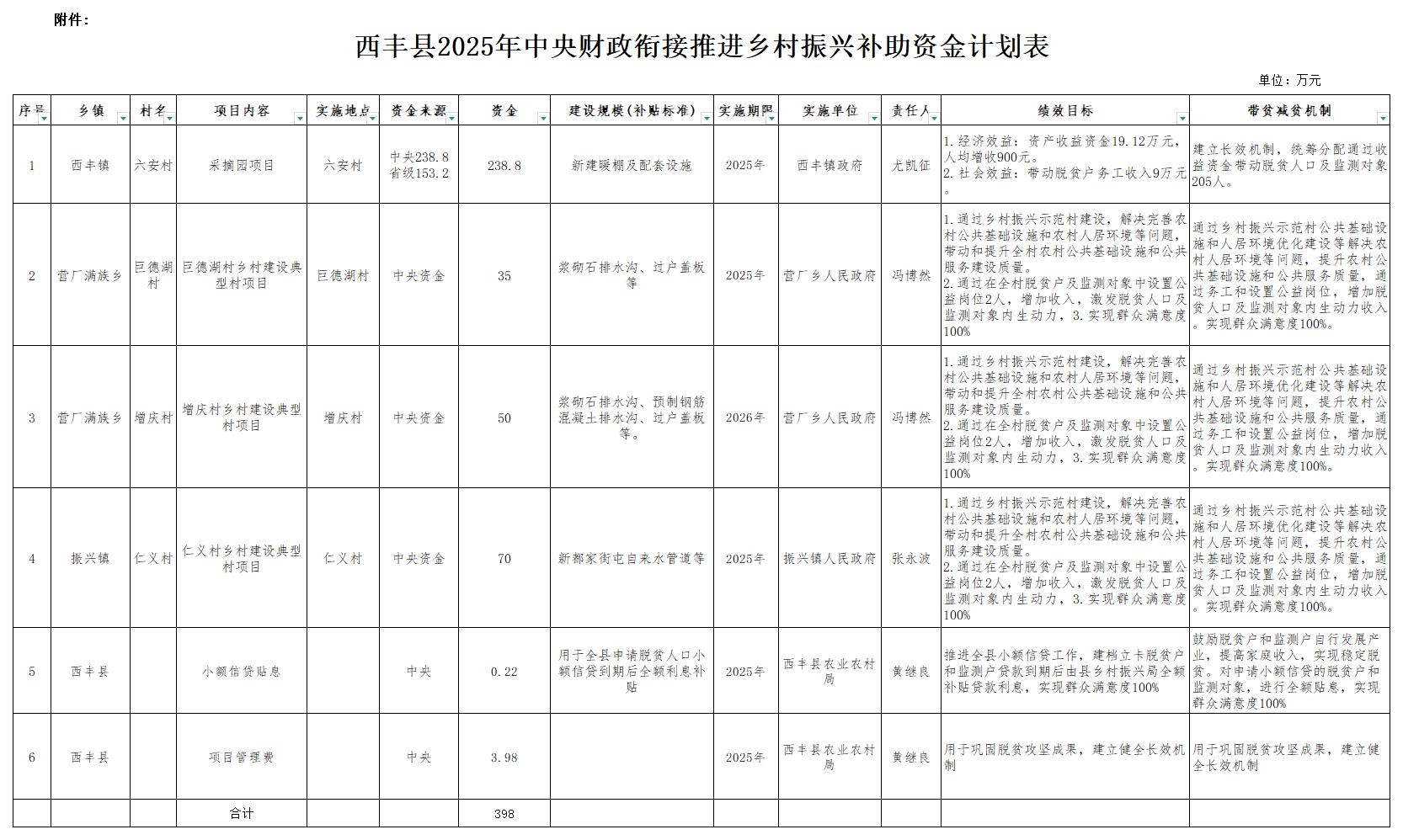 2025年,我县中央财政衔接推进乡村振兴补助资金共398万元,为切实发挥财政衔接推进乡村振兴补助资金使用效益,确保我县如期完成今年衔接推进乡村振兴目标任务,制定如下计划。